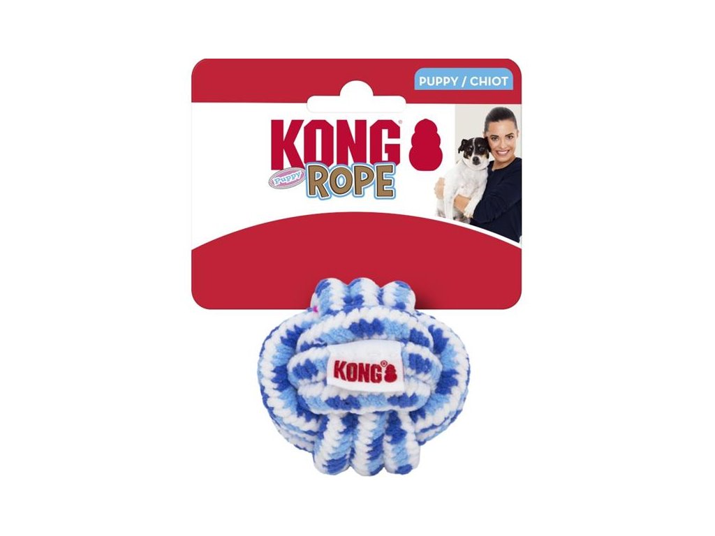 Lehký textilní míč pro štěňata KONG Puppy Rope Ball vznikl propletením lana do tvaru koule. Díky mimořádně měkké, ale přitom velmi pevné přízi, ze které je lano spleteno, je tato hračka ideální pro štěňata – je příjemná na skus, bezpečná pro jejich zuby i dásně, ale zároveň velice odolná vůči zničení. Podporuje jejich instinktivní žvýkací potřeby a lze ji využít například při nácviku aportování. Svými rozměry (velikost S) vyhovuje štěňatům.
