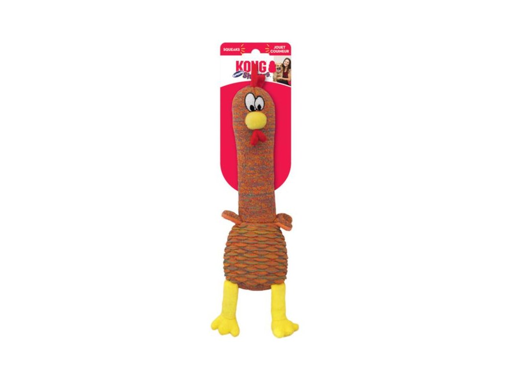 Hračky pro psy KONG Shakers Cuckoos jsou podlouhlé, štíhlé, různobarevné ptačí postavičky, které svým vzezřením podporují přirozené psí instinkty. Jejich dlouhé tělo doslova vybízí k zuřivému třepání, pohazování, aportování a hrám na přetahování, zatímco lehce pohyblivé nožky, plochá křidélka a zobák svádí spíše k okusování. Hračka je vyrobena z velmi pevné a silné látky, odolnost vůči zničení je podpořena i vyztuženou podšívkou. Při každém skousnutí se navíc ozývají nízké pískavé tóny a šustivé zvuky, které upoutají pozornost vašeho psa a vystupňují jeho vzrušení ze hry. Hračku lze snadno přenášet v tlamě a její měkké tělo je příjemné na okusování a šetrné k zubům i dásním. Je vhodná pro štěňata a psy menší a střední velikosti