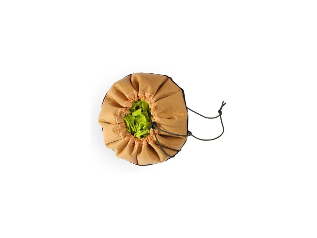 Pamlsky můžete schovat mezi jednotlivé záhyby koberečku a nechat pejska šmejdit, jak je tomu u klasické čmuchací podložky. Hledání lze pejskovi ještě znesnadnit a oživit tím, že pomocí gumy, nacházející se po obvodu koberečku, upravíte jeho tvar tak, že ho stáhnete do vaku. Pamlsky se tak budou hledat mnohem obtížněji, hra zabere více času a vyžaduje od pejska větší dávku trpělivosti a zápalu, než je tomu u rozloženého koberečku.