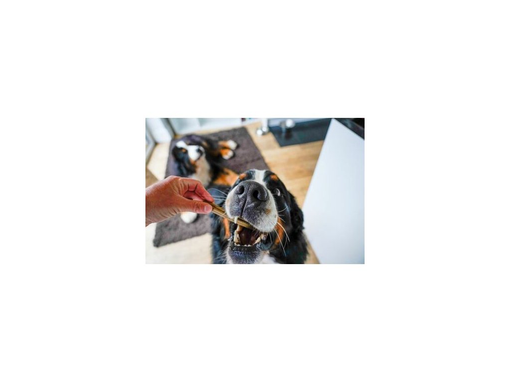 Množství podávaného pamlsku vždy přizpůsobte hmotnosti, aktivitě a celkové kondici psa. Při podání pamlsku nenechávejte psa bez dozoru. Zajistěte dostatek pitné vody.