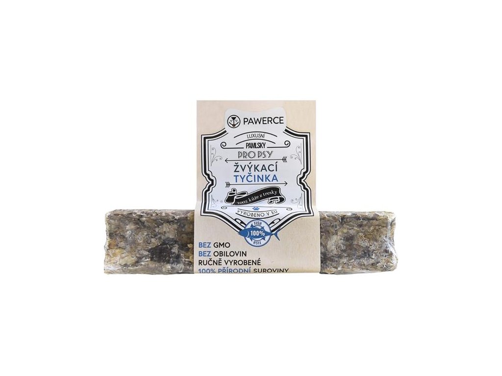 Luxusní pamlsek Pawerce ze 100% kůže z tresky je originální a chutná žvýkačka pro psy. Tresčí kůže je zdrojem kvalitních bílkovin, vitamínů, minerálů a omega-3 a omega-6 mastných kyselin, které příznivě působí na zdraví srdce, nervové soustavy a stav kůže a srsti vašeho psa. Navíc žvýkání psa zabaví a posílí jeho žvýkací svaly.