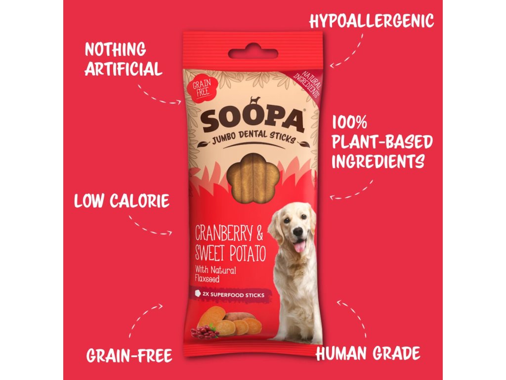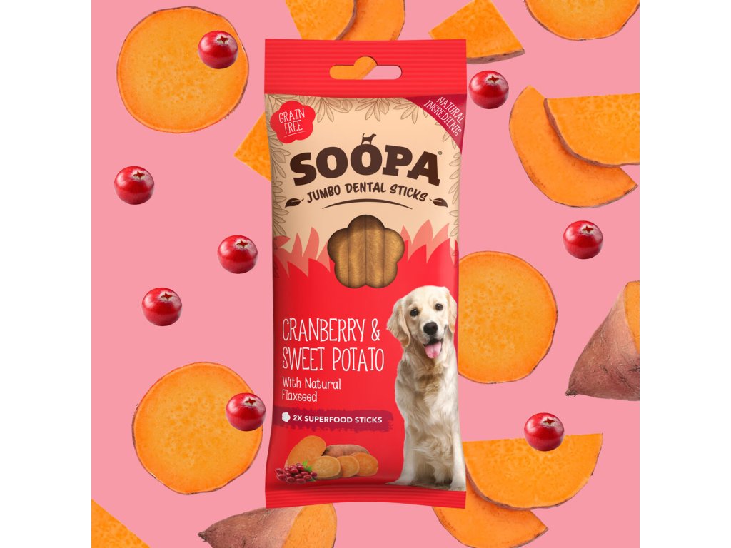 Soopa Dentální tyčinky Jumbo s brusinkami a batáty 170 g