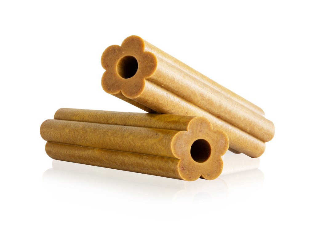 Jejich konzistence umožňuje psovi intenzivní a zároveň bezpečné žvýkání. Tyčinky jsou dost tvrdé na to, aby jejich žvýkání pomáhalo psovi čistit zuby a masírovat dásně, ale současně jsou dostatečně tvárné, aby nedocházelo k poranění zubů nebo podráždění dásní uvnitř tlamy.