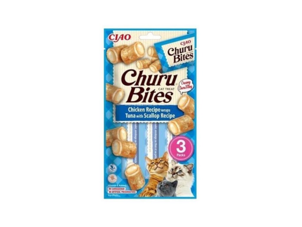 Inaba Churu Bites cat snack kuře,tuňák,hřebenatka 3x10g