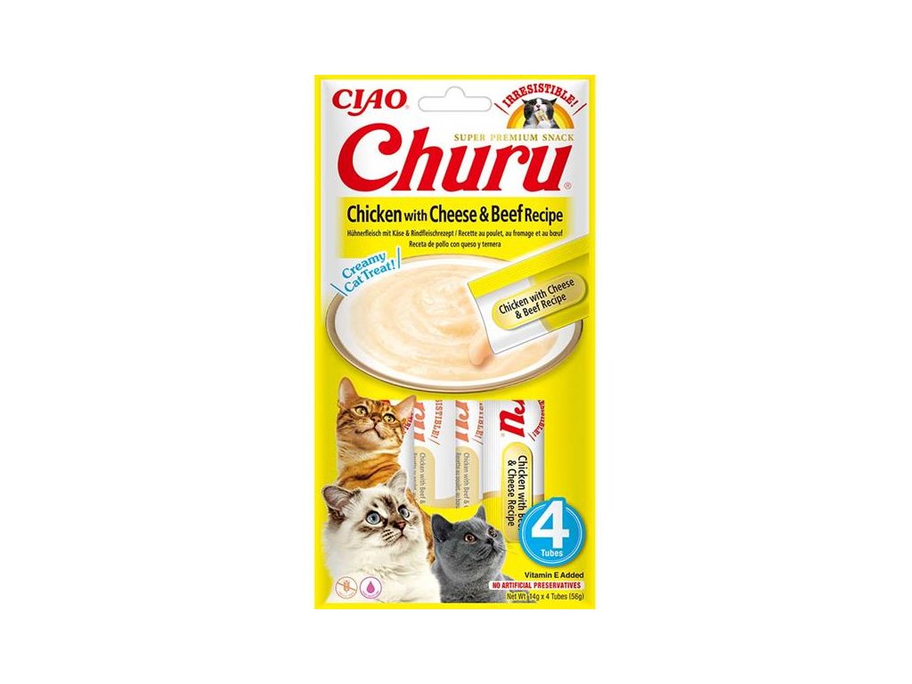 Inaba Churu cat snack kuře, sýr a hovězí příchutí 4x 14g