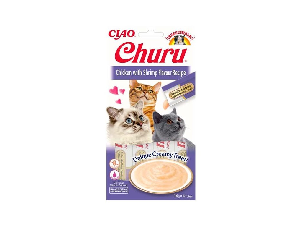 Inaba Churu cat snack Kuře s krevetovou příchutí 4x 14g