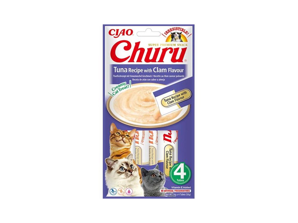 Inaba Churu cat snack tuňák s příchutí škeble 4x 14g