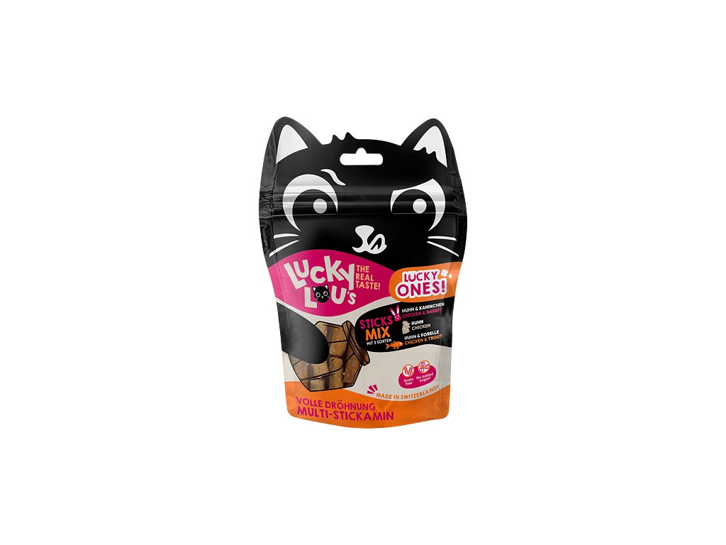 Lucky Ones Sticks jsou voňavé a chutné masové pamlsky z kuřecího masa, králíka a pstruha balené v praktickém míchaném balení. Díky němu můžete zjistit, které chutnají vaší kočce nejvíce!Pamlsky Sticks Rozšiřují řadu Lucky Ones o další skvělé příchutě a zábavný tvar pamlsku. Každá tyčinka je přibližně 7 cm dlouhá a snadno ji lze naporcovat i na menší kousky.