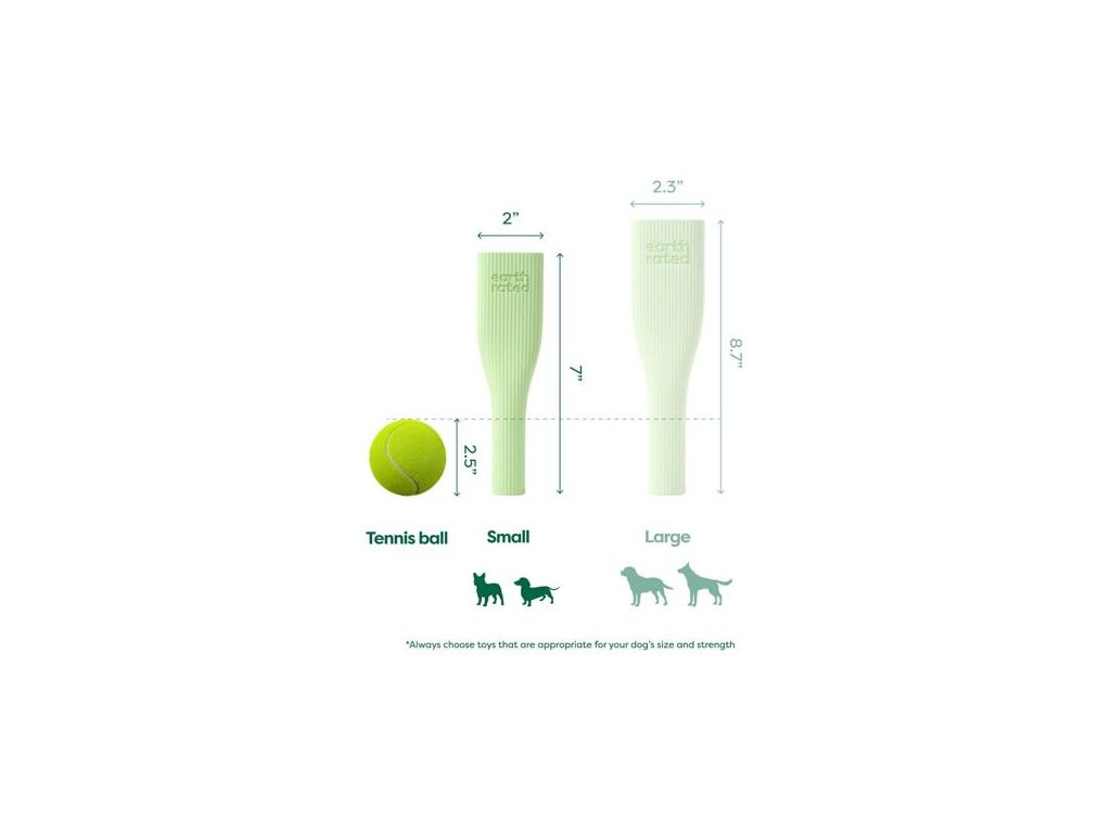 Všechny hračky Earth Rated prošly nezávislými testy zaměřenými na jejich výdrž a odolnost vůči okusování a přetahování. Nezapomeňte ale, že žádná hračka pro psy není nezničitelná, a proto vám doporučujeme na hru neustále dohlížet a v případě, že hračka vykazuje známky poškození, ji psovi odebrat. Pokud se domníváte, že pes spolkl kus hračky, zavolejte svého veterinárního lékaře. Určeno pouze pro psy.