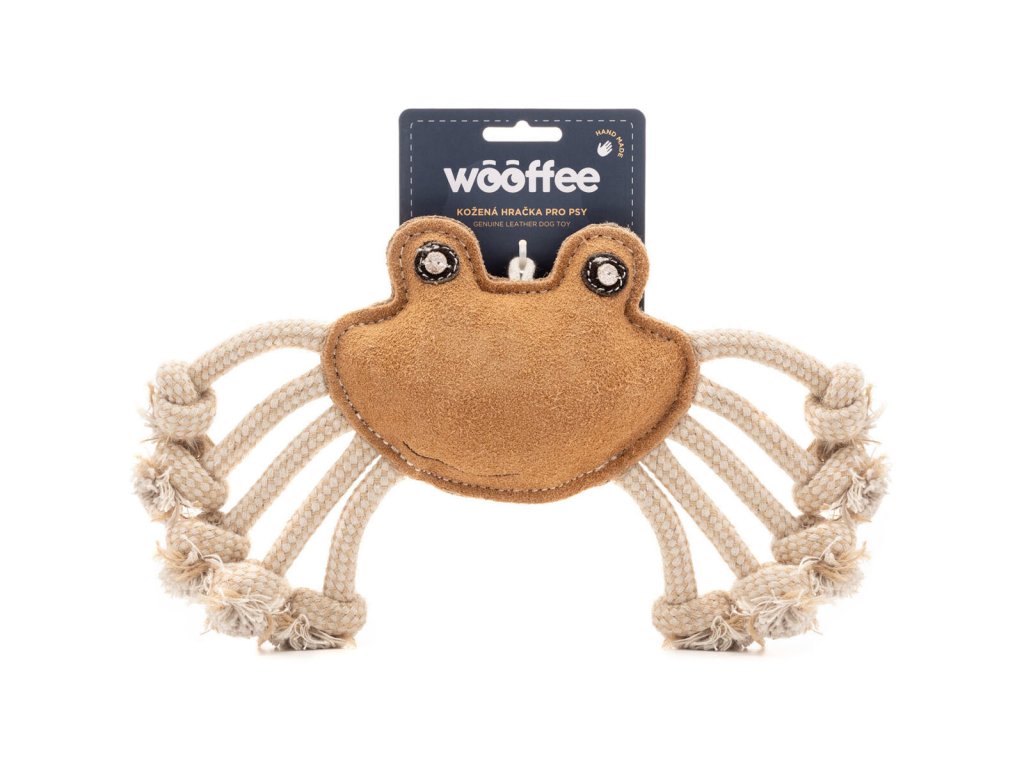 Wooffee krab je vyroben z kombinace přírodních materiálů, které jsou šetrné k zubům a dásním psa a odolávají opakovanému kousání. Tělo je z buvolí kůže s výplní z kokosových vláken a je prošito nití. Nohy jsou z jutového provazu s příměsí bavlny, který je ideální pro kousání i přetahování.Ke hře s ním psa zláká i vůně kůže, která připomíná pach kořisti a vyvolává přirozenou touhu kousat, žvýkat a lovit.