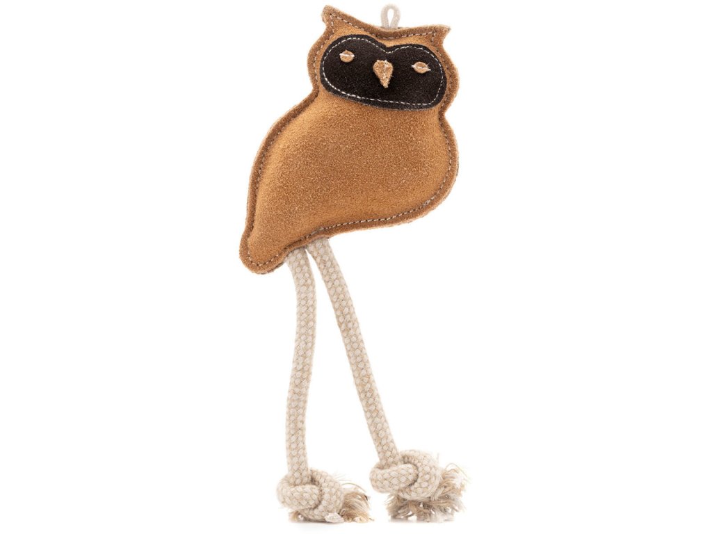 Wooffee sova je vyrobena z kombinace přírodních materiálů, které jsou šetrné k zubům a dásním psa a odolávají opakovanému kousání. Tělo je z buvolí kůže s výplní z kokosových vláken a je prošito nití. Nohy jsou z jutového provazu s příměsí bavlny, který je ideální pro kousání i přetahování.Ke hře s ní psa zláká i vůně kůže, která připomíná pach kořisti a vyvolává přirozenou touhu kousat, žvýkat a lovit.