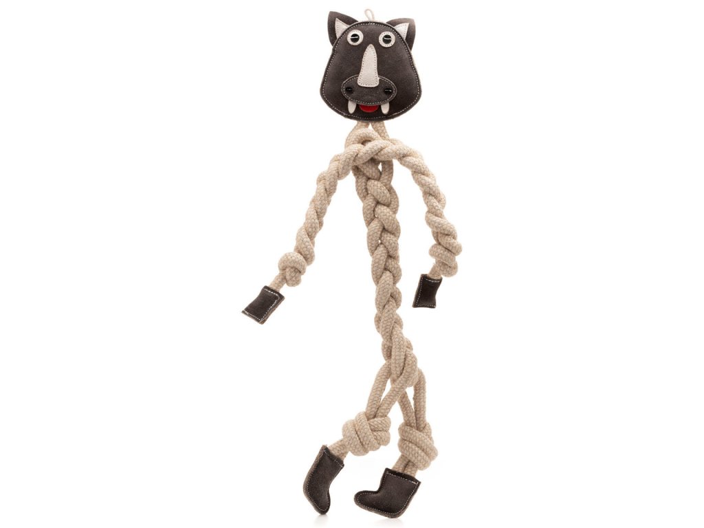 Hračka s extra dlouhým provazovým tělem je vyrobena z kombinace přírodních materiálů, díky čemuž je ideální na přetahování i kousání.Tělo, ruce a nohy jsou spletené z pevného provazu vyrobeného z juty a bavlny. Provaz je ideální pro přetahování – je odolný a zároveň šetrný k psím zubům a dásním.