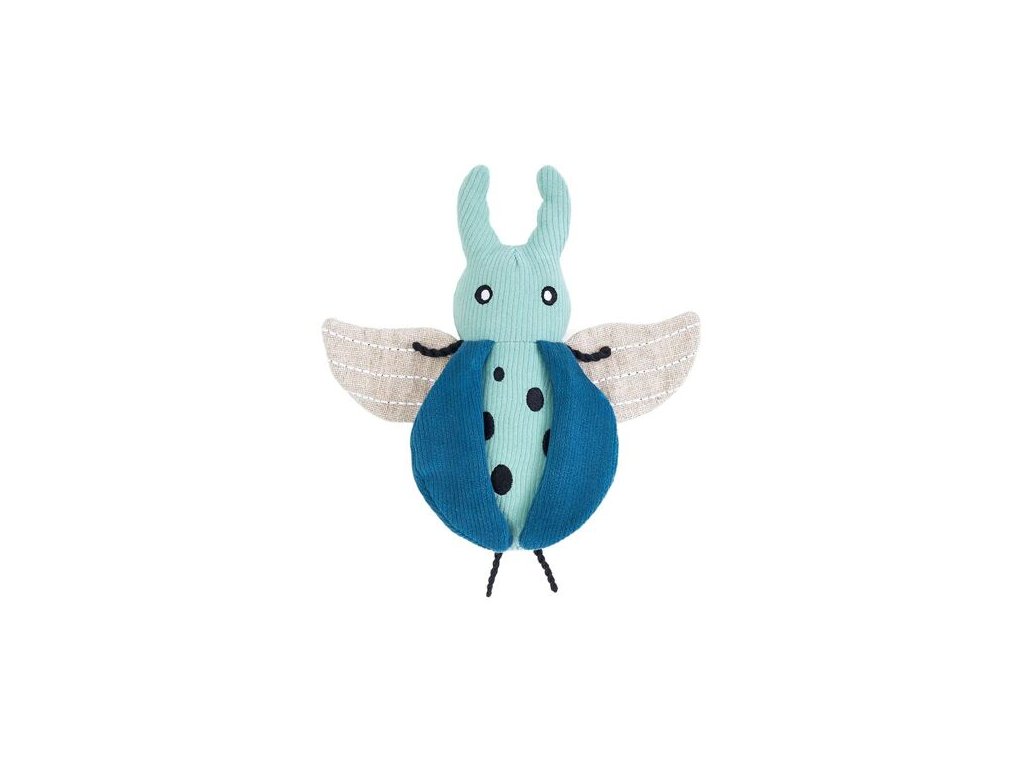 Tělo broučka je z pevné látky s vyšívanými detaily, jeho křidélka jsou z manšestru s křupající výplní a nožičky z provázků jsou doplňkem, který povzbuzuje pejsky ke zkoumání.