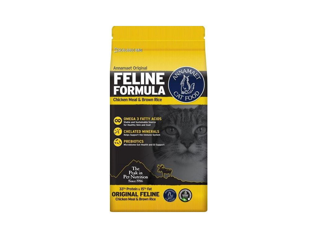 Annamaet Feline Original je receptura vyhlášená svou výjimečnou chutí. Je vyrobena z kvalitních kuřat, celozrnné rýže, bílých mořských ryb a sleďů, bez použití kukuřice a pšenice.