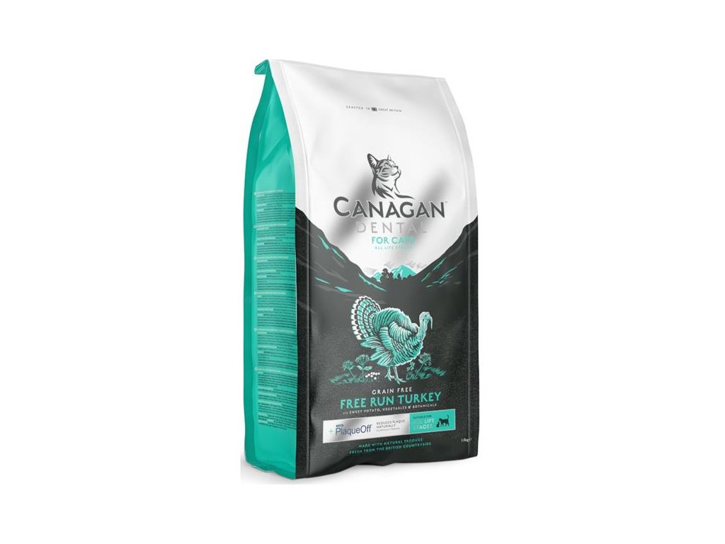 Kompletní krmivo pro kočky Canagan Dental je pečlivě připravená bezobilná receptura, jejíž hlavní složku tvoří maso krůt z volného chovu. Speciální složka ProDen PlaqueOff®, vyráběná z mořských řas získávaných podél severoatlantického pobřeží, pomáhá přirozeně snižovat tvorbu zubního plaku (do slin uvolňuje složky, které rozkládají bakteriální povlak na zubech).