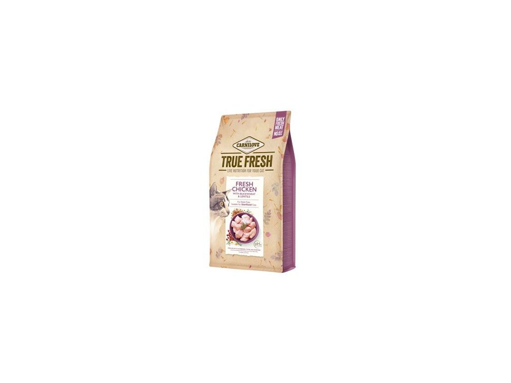 CARNILOVE TRUE FRESH CHICKEN. Receptura bez obilovin a brambor pouze s čerstvým masem pro dospělé kočky. Vhodné pro kastrované kočky. Kompletní krmivo pro kočky.