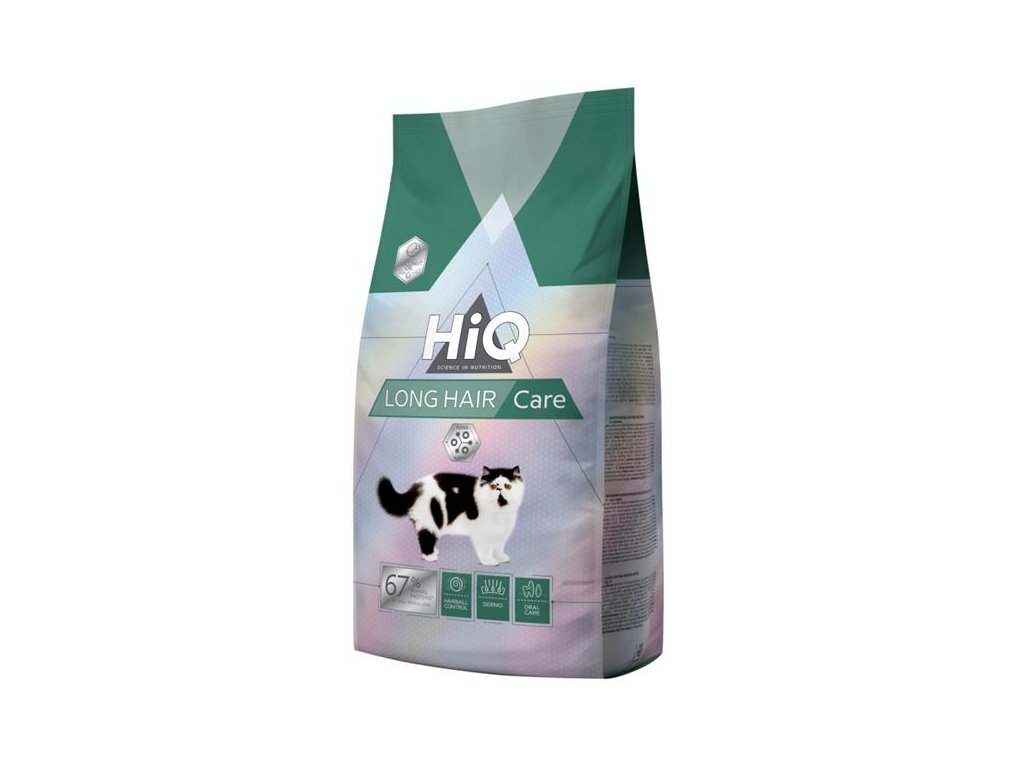 Kompletní krmivo HiQ pro dospělé dlouhosrsté kočky je správná volba pro dokonalou péči o dlouhou srst vaši kočky. Vhodné pro kočky starší než 1 rok. Komponenty krmiva pomáhají zachovat lesk a hustotu srsti a dále dbají na zdraví pokožky. Odstraňují hrudky srsti nahromaděné v žaludku. Napomáhají k posílení dásní a snížení rizika tvorby zubního kamene.