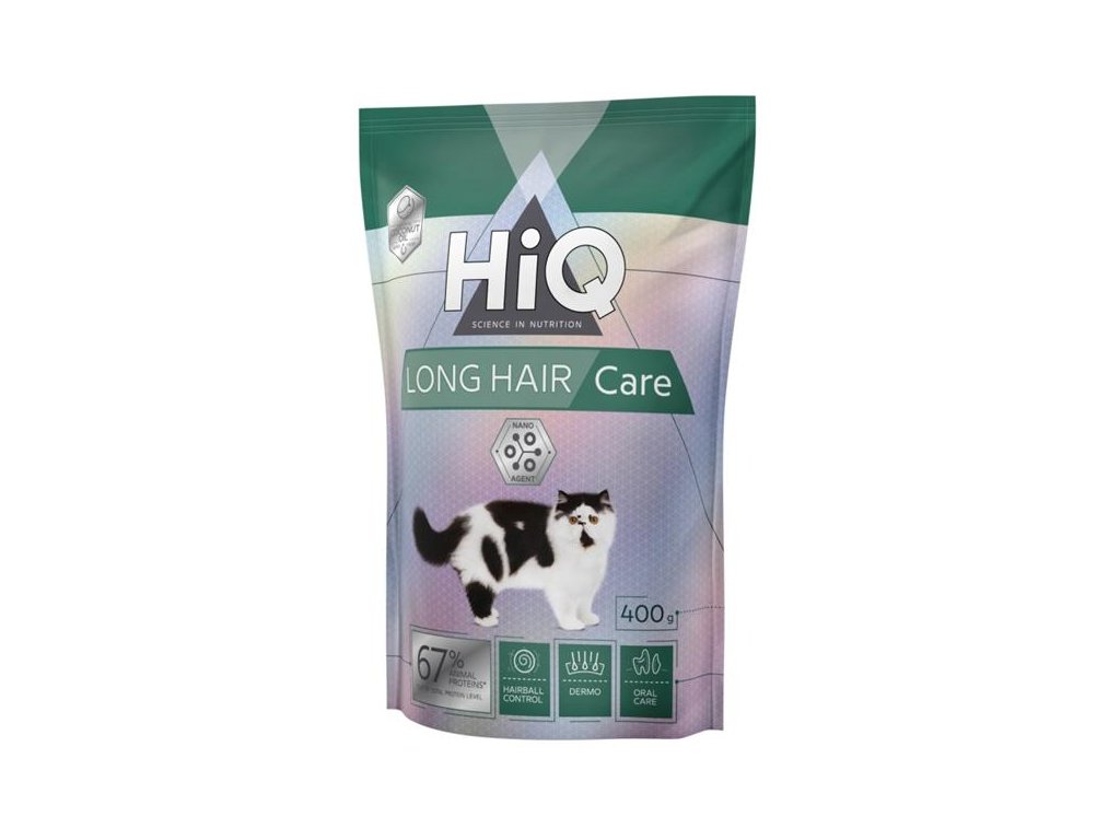 Kompletní krmivo HiQ pro dospělé dlouhosrsté kočky je správná volba pro dokonalou péči o dlouhou srst vaši kočky. Vhodné pro kočky starší než 1 rok. Komponenty krmiva pomáhají zachovat lesk a hustotu srsti a dále dbají na zdraví pokožky. Odstraňují hrudky srsti nahromaděné v žaludku. Napomáhají k posílení dásní a snížení rizika tvorby zubního kamene.