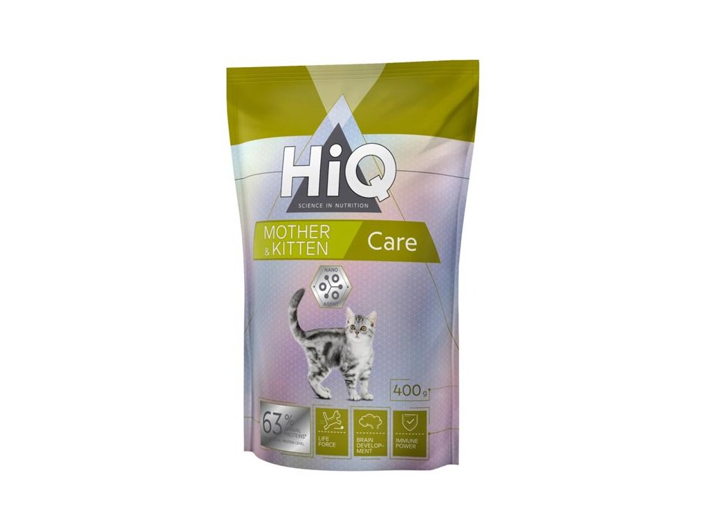 Kompletní krmivo HiQ pro koťata a rostoucí mladé kočky (do 1 roku) podporuje udržení správného metabolismu a optimální hmotnosti kočky. Je taky vhodné pro březí a kojící kočky. Perfektní řešení výživy matky a její koťat. Krmivo podporuje snadné trávení a vstřebávání živin. Komponenty krmiva napomáhají zachovat lesk a hustotu srsti, podporují zdraví pokožky. Zároveň správný výběr komponentů krmiva zajišťuje podporu provozu nervové soustavy, což u mladých koček je obzvlášť důležité.