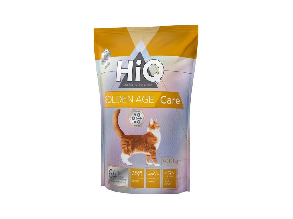 Kompletní krmivo HiQ je vhodné pro kočky starší než 10 let. Krmivo podporuje správné fungování všech systémů organismu u starších koček. Při správném podávání snižuje riziko vzniku šedého zákalu (katarakta), chrání oči před škodlivými účinky vnějšího prostředí. Komponenty krmiva napomáhají zachovat lesk a hustotu srsti. Zároveň podporují snadné trávení a vstřebávání živin. Podporuje správné fungování činnosti srdce.