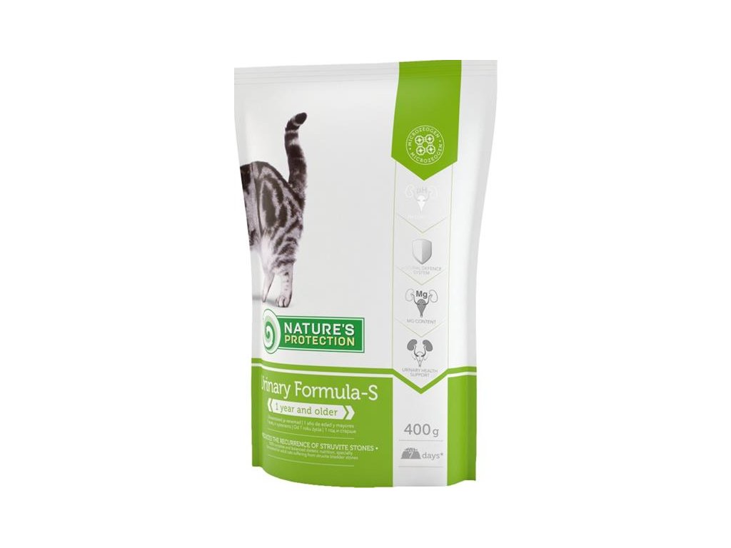 Nature's Protection Cat Urinary – speciální krmivo pro dospělé kočky od 1 roku věku, které omezuje opakovanou tvorbu struvitových kamenů.