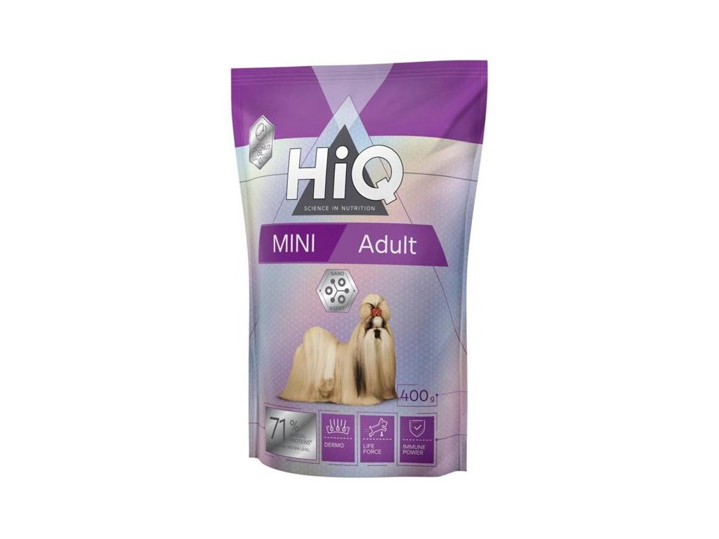 Kompletní krmivo HiQ Adult Mini pro dospělé psy malých plemen o hmotnosti 1–10 kg obsahuje jako hlavní složku drůbeží maso – zdroj nejsnáze stravitelných živočišných bílkovin ideální pro udržení správného svalového tonu. Komponenty krmiva podporují zdraví pokožky a napomáhají k lesklé a husté srsti. Granule podporují trávení a vstřebávání živin a poskytují dostatek energie pro vitalitu psa.