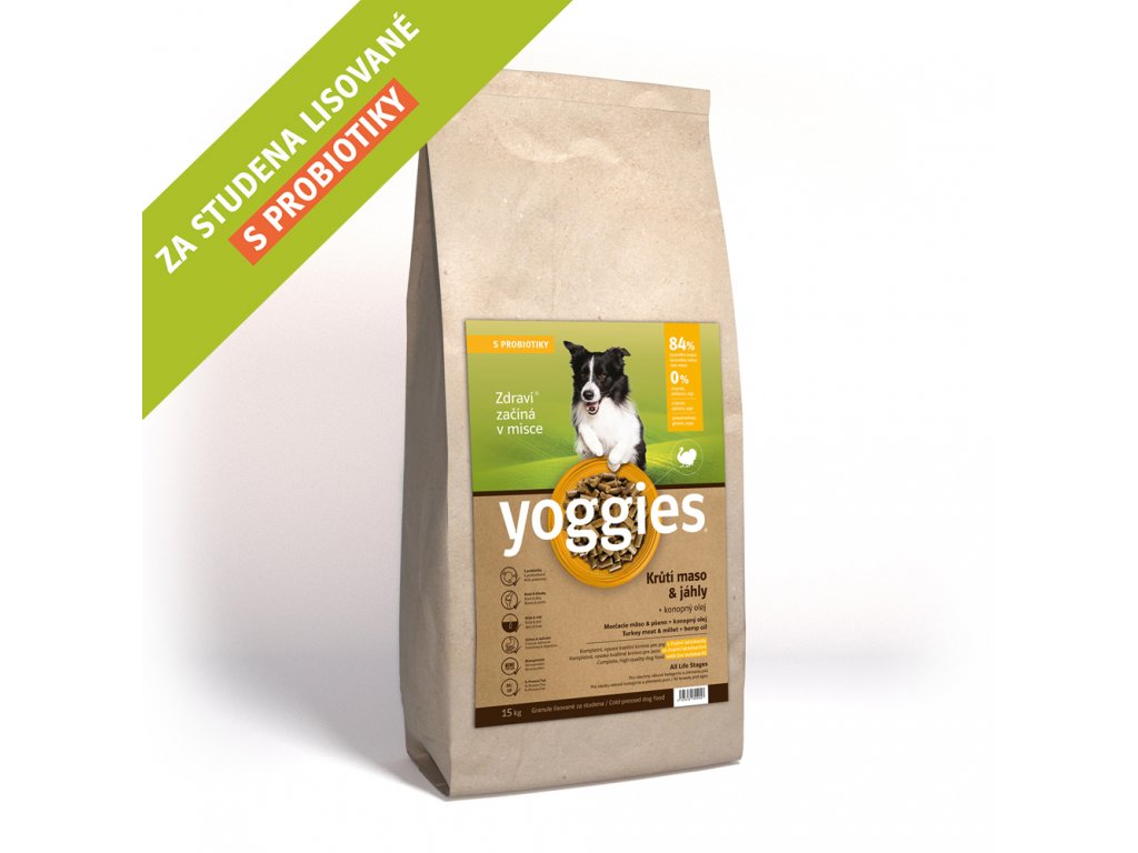Yoggies granule pro psy lisované za studena s probiotiky s krůtím masem a jáhly 15kg