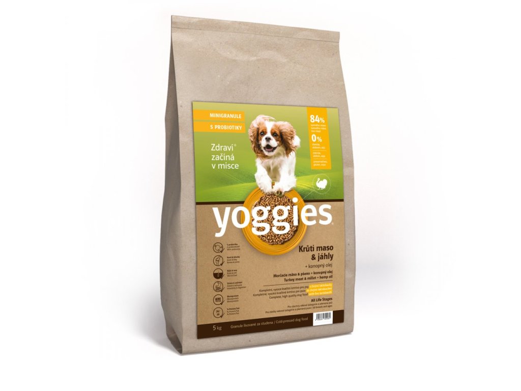 Yoggies MINIGRANULE pro psy lisované za studena s probiotiky s krůtím masem a jáhly 5kg