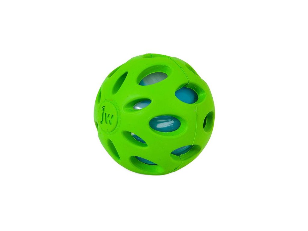 Míčky JW Crackle Heads jsou úžasné díky gumové vnější straně, která chrání křupající vnitřek vyrobený ze stejného materiálu jako PET lahve. Díky otvorům, které umožňují snadné uchopení, a trvanlivé, silné a odolné gumě je tato hračka ideální k házení a aportování nebo samostatné hraní.Když do něj váš pejsek kousne, příjemně ho překvapí praskavé zvuky. Přesně takové, jako když kouše plastovou láhev na nápoje, což řada psů naprosto zbožňuje.