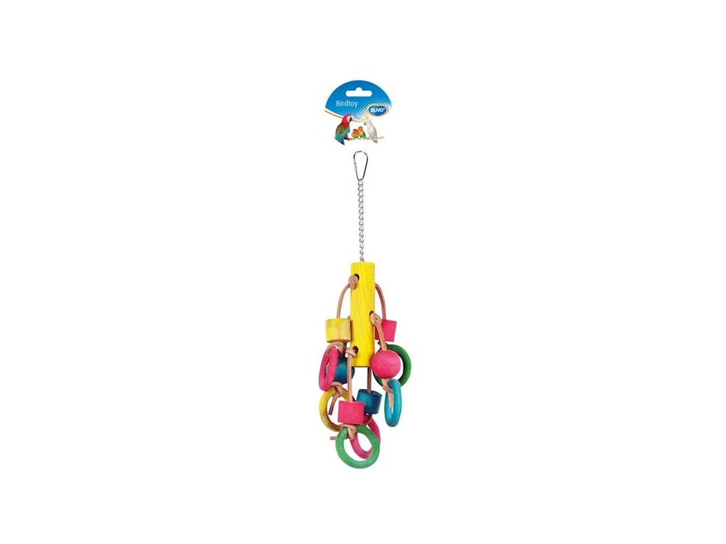 Hračka pták dřevo/kůže - kostky a kruhy Duvo+ 33 cm