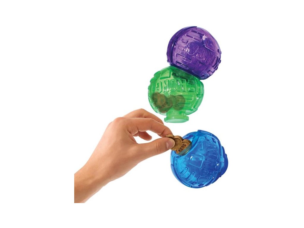 Interaktivní, plnitelná hračka KONG Lock-It je zároveň hlavolam a zpomalovací miska. Plnitelné míčky můžete využít na aportování, nebo jako interaktivní hádanku pro Vašeho psa. Naplňte míčky granulemi či pamlsky a tím začne zábavné a pomalé krmení.