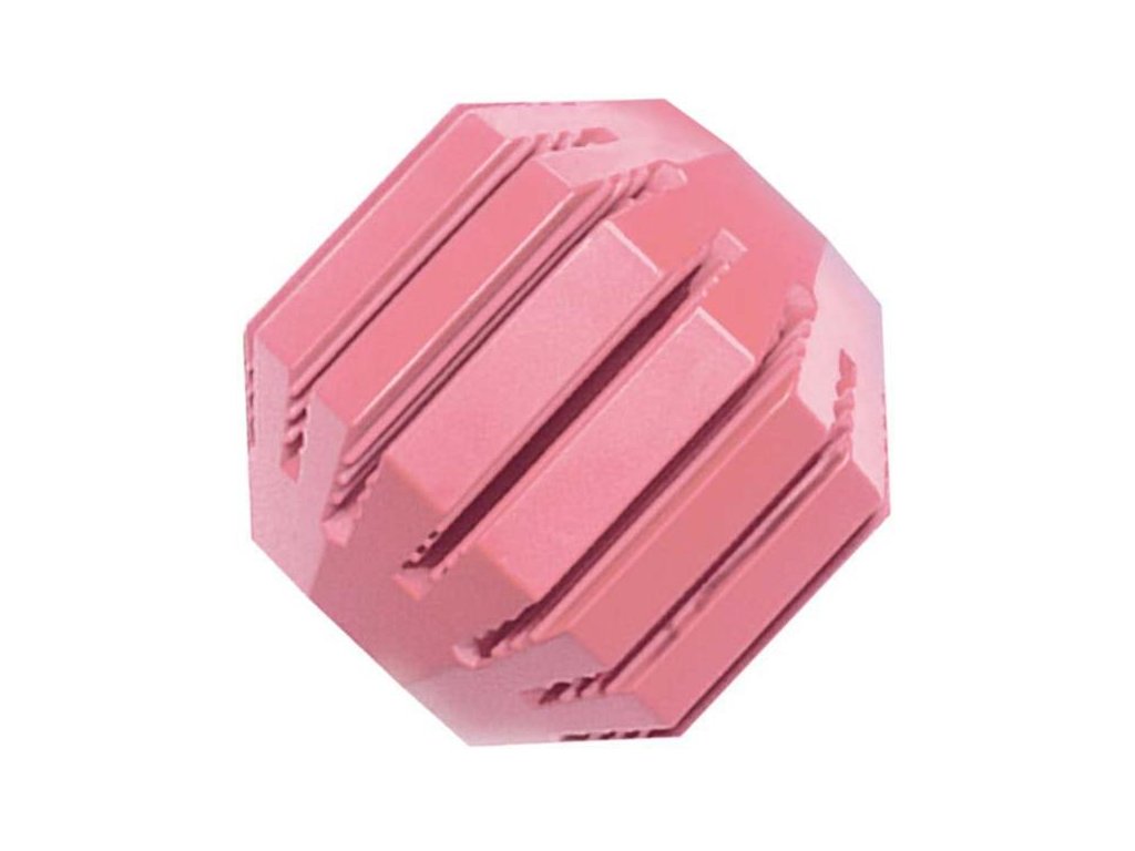 KONG Míč je vyrobený ze speciální odolné gumy – přírodního kaučuku. Je výborná zejména pro štěňátka do věku 9 měsíců, její předností je daleko větší odolnost než u jiných běžně dostupných hraček. Je vyrobena z ultra elastického, čistě přírodního kaučuku, který je velmi pružný a zároveň velmi odolný a pevný i pro největší ničitele hraček. Perfektní hračka pro psy, kteří milují aportovaní a žvýkání.