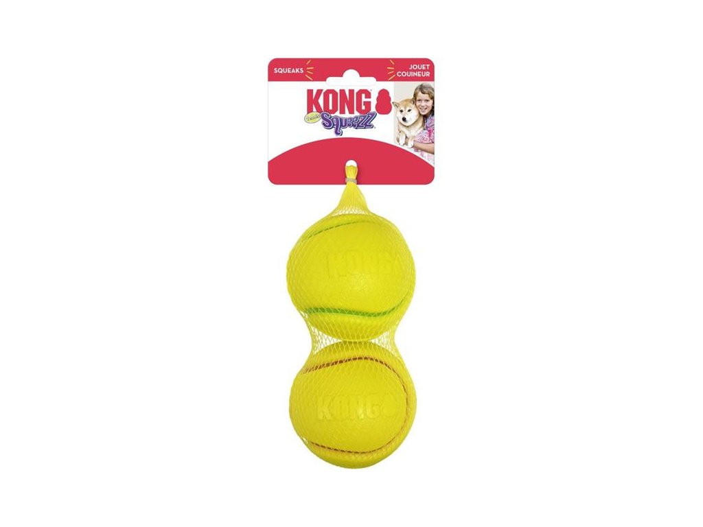 Míčky KONG Squeezz Tennis jsou vyrobené z jednoho kusu termoplastické gumy, pružného, a přitom houževnatého materiálu, který zajišťuje vysoký odraz a odolnost vůči psím i štěněcím zubům. Pro ještě větší vzrušení ze hry je v hračce zabudované pískátko. Výrazná žlutá barva je dobře vidět za každého počasí i ročního období.