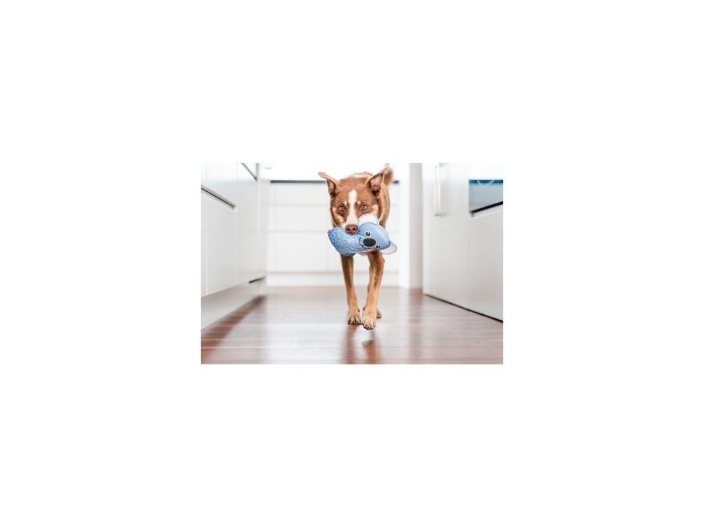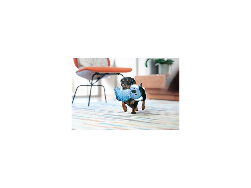 Příjemně měkká, lehká, stylová, a přitom odolná – to je Kim. Kim píská a zvládne i divočejší hru doma nebo venku. Tahle koalí slečna je věrnou kamarádkou každého psa.Materiál je i přes jeho vlastnosti jemný a šetrný k psím zubům. S touto hračkou si tak můžete bez obav hrát i se psími seniory a štěňátky.