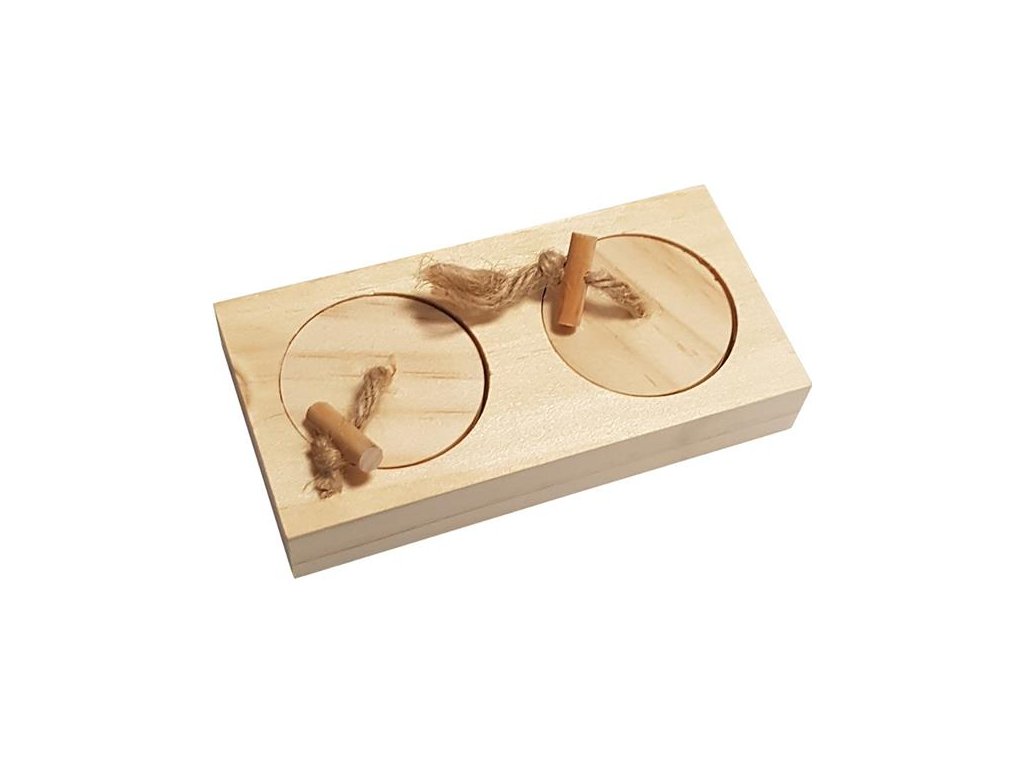 Interaktivní hračka se skrýšemi zakrytými pokličkami, do kterých můžete poschovávat krmivo nebo oblíbené pamlsky a tím motivovat vašeho králíka, morče, potkana nebo jiného drobného savce k aktivitě fyzické i mentální. Hledání potravy nebo pamlsků zvíře zabaví, podpoří jeho psychickou pohodu a předchází nudě. Samotná hračka, vyrobená ze dřeva, poslouží i jako materiál k hlodání a uspokojení přirozeného hlodacího instinktu a pomůže udržet růst hlodavých zubů pod kontrolou.