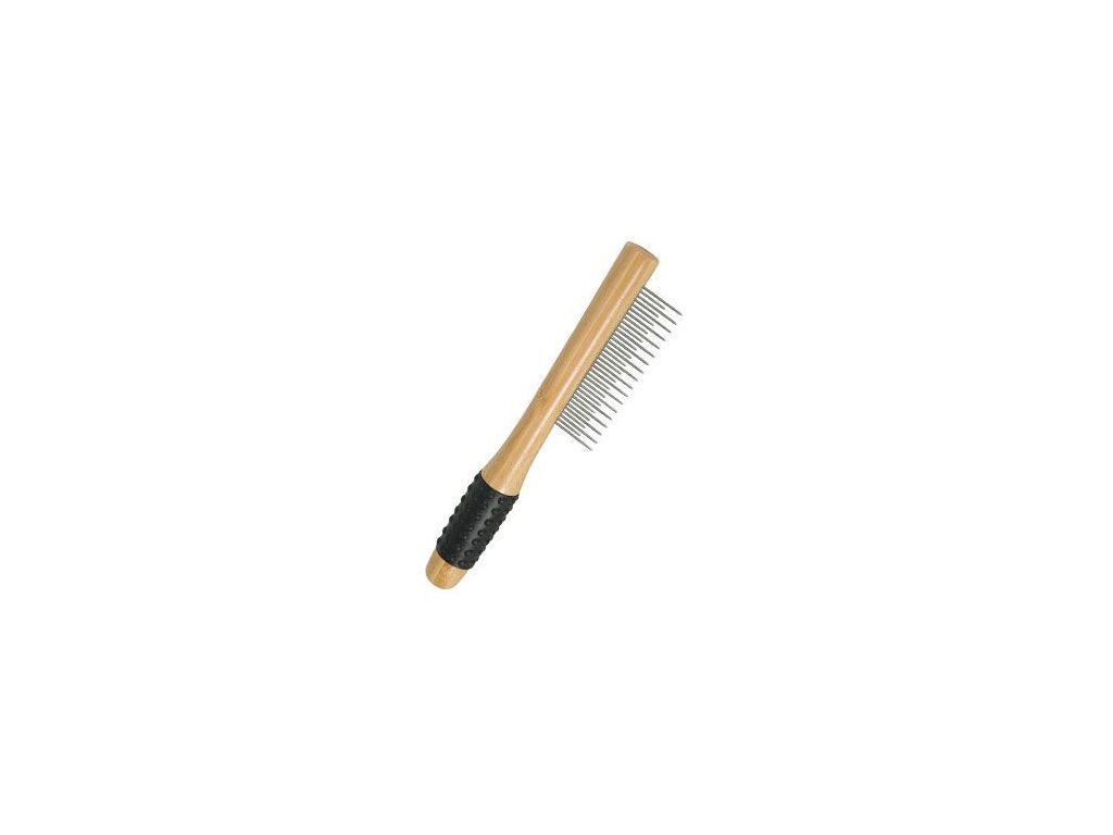 Jemný dřevěný hřeben je vysoce kvalitní doplněk pro péči o psy určený k rozmotávání srsti a odstraňování odumřelé podsady. Je součástí nové řady dřevěných kartáčů, hřebenů, nůžek a nůžek Zolux, vyrobených z odolných materiálů, jako je bambus, bukové dřevo, kančí štětiny a nerezová ocel. Hřeben má zaoblené zuby bezpečné pro pokožku psa, které jemně a účinně rozčesávají srst a protiskluzová bambusová rukojeť zajišťuje pohodlí při používání.