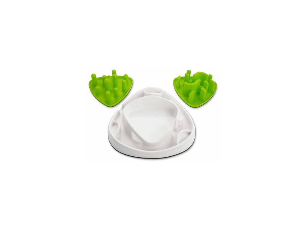 Interaktivní miska na krmení a pamlsky – bludiště s vyměnitelnou vložkou.Krmení nebo hledání odměn se s tímto interaktivním bludištěm stane pro vašeho pejska výzvou! Stačí rozsypat vybrané množství dobrot či krmnou dávku v bludišti a nechat psa hledat způsoby, jak je vydolovat. Používat může přitom svůj jazyk, nos či packy.