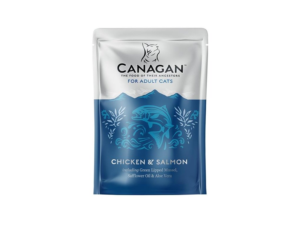 Canagan Chicken & Salmon - je kompletní krmivo pro dospělé kočky z kuřecího masa a masa z lososa v receptuře bez obilovin. Nejlepší kousky masa (v každé kapsičce je až 80 % živočišných surovin) pro zdraví a skvělou chuť krmiva. Zelená škeble navíc představuje přirozený zdroj glukosaminu a pomáhá pečovat o zdravé klouby vaší kočky.