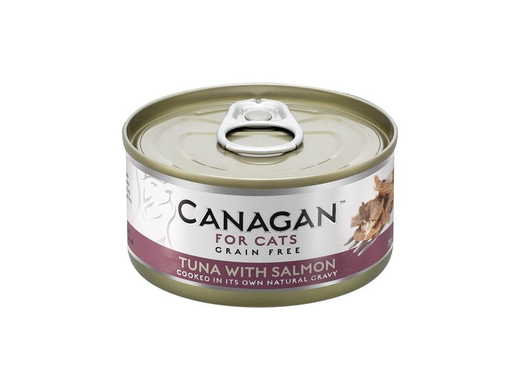 Canagan Cat Tuna with Salmon – je kompletní krmivo pro kočky. Vyrobené je z masa z tuňáků, kteří jsou volně lovení metodou šetrného odchytu na udici. Tuňáka doplňují lahodné kousky lososa - vše je šetrně vařené ve vlastní šťávě pro zachování vysoké výživové hodnoty krmiva.