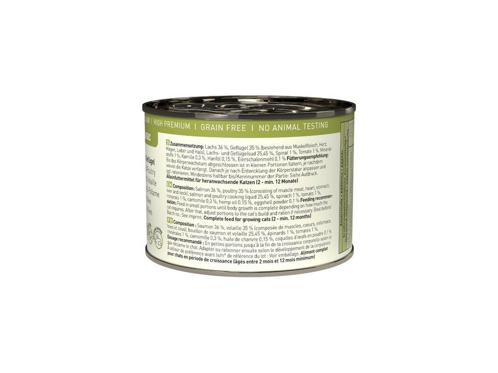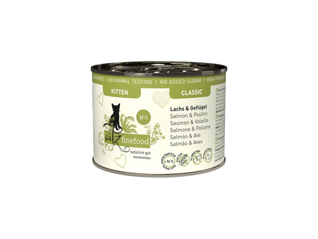 Catz Finefood Classic Kitten s lososem, drůbežím masem a špenátem 200 g