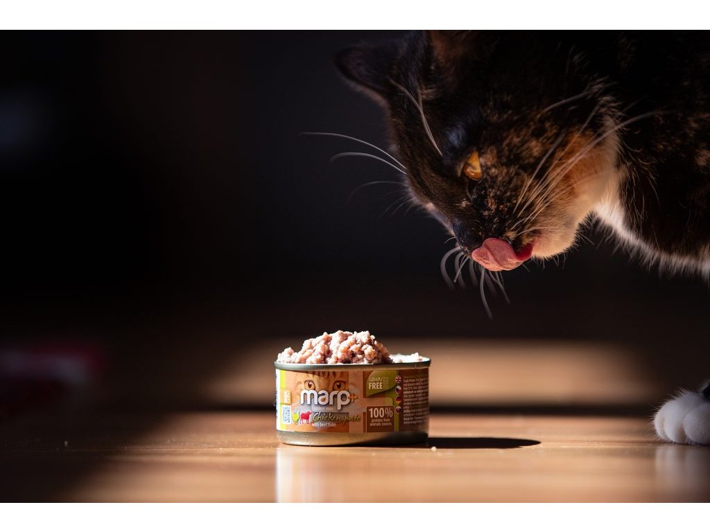 Vysoká chutnost nebo špičkové složení? V marpovském paté pro kočky můžete mít oboje. Základ tvoří kuře, které je doplněno o kousky hovězího masa! Tohle paté kočky prostě zbožňují. Kočku respektujeme jako masožravce, a proto je krmivo zcela bez obilovin a 100 % bílkovin pochází ze živočišných zdrojů, takže si můžete být jistí, že vaše kočka dostává to nejlepší, co si umíte představit. Na toto krmivo se vaše kočka nebude jenom těšit, bude na něm především velmi dobře prospívat.