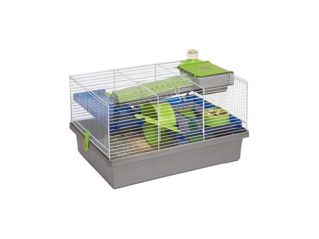 Plastová vícepatrová klec pro syrské křečky a křečíky s vybavením. Je vhodná také pro většinu myší a křečíků od 6 – 8 týdnů věku. Drátěná klec Pico, poskytuje různé prolézačky a skrýše. Snadný přístup do zavěšeného domečku a plnění napáječky z vnější části klece. Velmi jednoduché čištění, všechny části v prostoru jsou ke kleci připevněny, zásobník může být odebrán a vyčištěn. Boční a horní přístup do klece. Vybavení: napáječka, miska na krmení, domeček, schodiště a tiché kolečko na cvičení.
