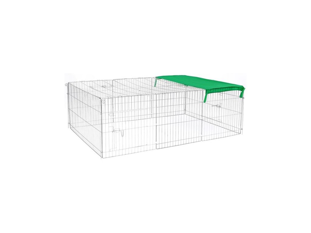 Prostorná klec pro chov králíků, větších hlodavců, kuřat a dalších drobných zvířat je tvořena drátěnými dílci, které se propojují a ukotvují k zemi dlouhými železnými kolíky. Ohrádka zvířatům brání v úniku a zároveň je chrání před útoky dravců. Přístup do výběhu umožňují dvoje boční a jedny stropní dvířka. Součástí balení je také plachta pro zastínění cca třetiny klece.