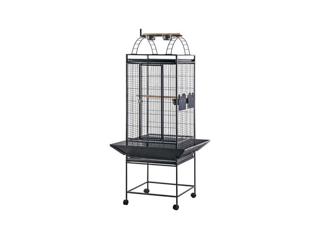 Voliéra Helios pro papoušky ve stříbřitě šedé barvě vhodná pro malé a střední papoušky. Klec se dodává se stojanem a je vybavená kolečky, čímž je umožněna pojízdnost klece a spodními ochrannými bočními lištami proti znečišťování okolí klece. Nad klecí je instalováno sezení pro papouška s dvěma miskami. Spodní část klece je vysunovací pro jednodušší a pohodlnější čištění. Otvírání klece je v přední stěně.