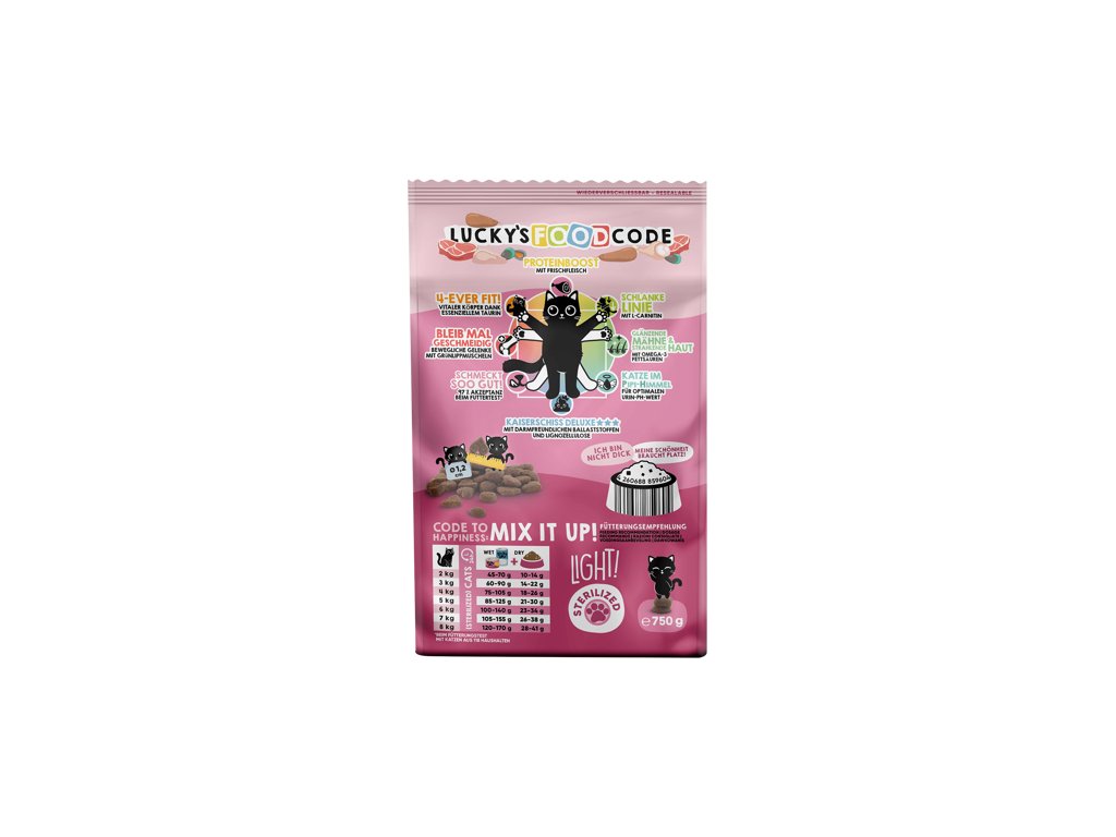 Krmivo Lucky Lou Food Code je inspirováno konceptem Vitruviánského muže od Leonarda da Vinciho a jedinečným způsobem tak kombinuje 8 výhod pro holistický koncept zdraví. Odráží tím da Vinciho pohled na dokonalé proporce těla, jeho krásu, zdraví a dokonalost do kočičího světa.