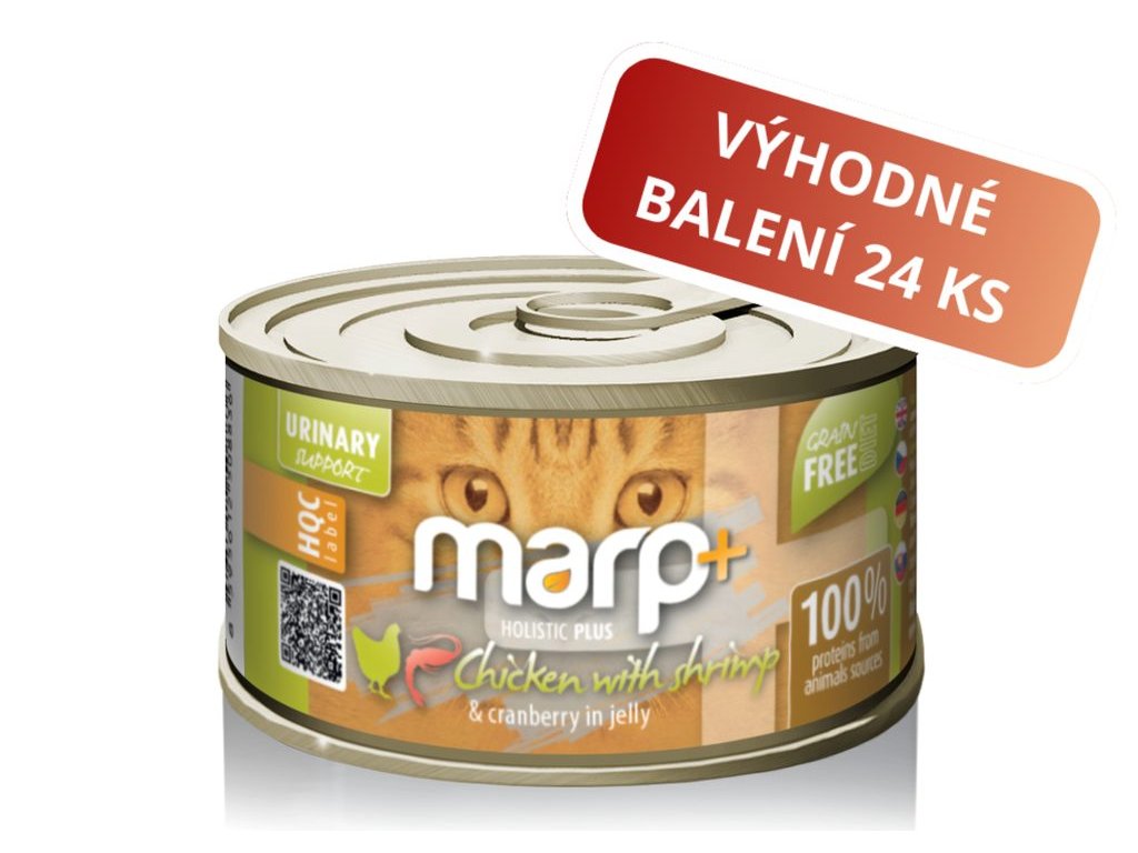 Marp Holistic Plus konzerva pro kočky – Kuře s krevetami a brusinkami v želé 24x70g