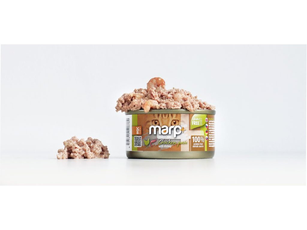 Vysoká chutnost nebo špičkové složení? V marpovském paté pro kočky můžete mít oboje. Základ tvoří kuře, které je doplněno o celé krevety! Tohle paté kočky prostě zbožňují. Kočku respektujeme jako masožravce, a proto je krmivo zcela bez obilovin a 100 % bílkovin pochází ze živočišných zdrojů, takže si můžete být jistí, že vaše kočka dostává to nejlepší, co si umíte představit. Na toto krmivo se vaše kočka nebude jenom těšit, bude na něm především velmi dobře prospívat.