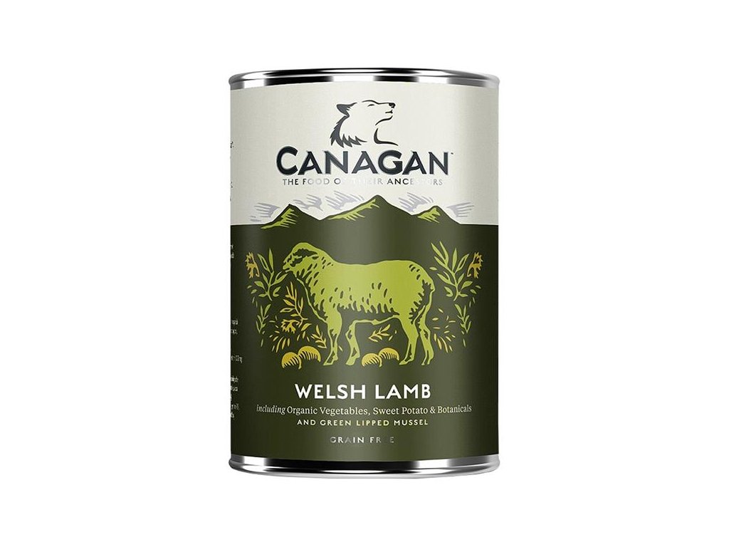 Šťavnatá masová konzerva Canagan Welsh Lamb. Jehněčí z Walesu v receptuře bez obilovin - kompletní krmivo pro dospělé psy.