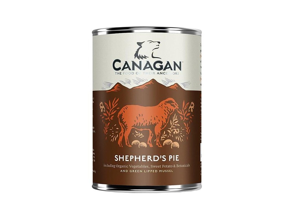 Šťavnatá masová konzerva Canagan Shepherd´s Pie. Pastýřský masový koláč v receptuře bez obilovin - kompletní krmivo pro dospělé psy.