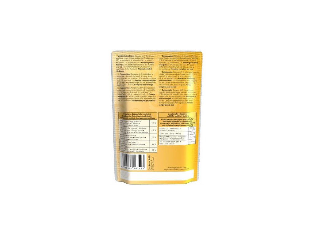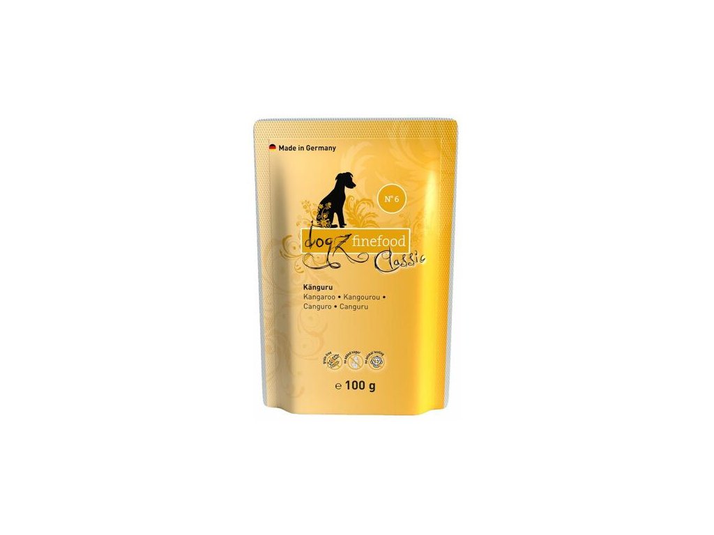 Lahodné krmivo pro psy, které obsahuje spoustu klokaního masa, brambory, zdraví prospěšný pupalkový olej a šípky. Dogz finefood obsahuje pouze suroviny vysoké potravinářské kvality a svým složením odpovídá přirozené psí stravě. Krmivo je bez konzervantů, umělých barviv a dochucovadel. Krmivo neobsahuje geneticky upravené suroviny. Jedná se o kompletní krmivo.Složení: klokaní vnitřnosti 65% (srdce, játra, žaludky a plíce), voda 27,7%, brambory 6%, minerály 1%, pupalkový olej 0,2% a šípky 0,1%.